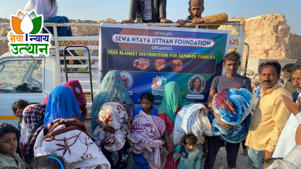 Sewa Nyaya Utthan Foundation distributed good-quality blankets to around 150 Pakistani Hindu refugee families at Jodhpur, Rajasthan.