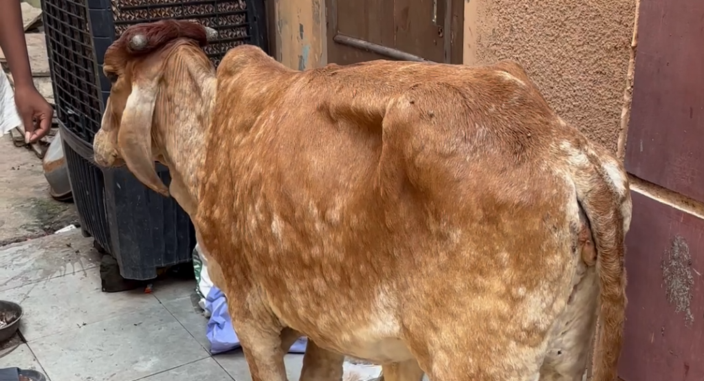 This gentle cow, covered in painful spots from a skin disease, was left on the streets with nowhere to turn.
