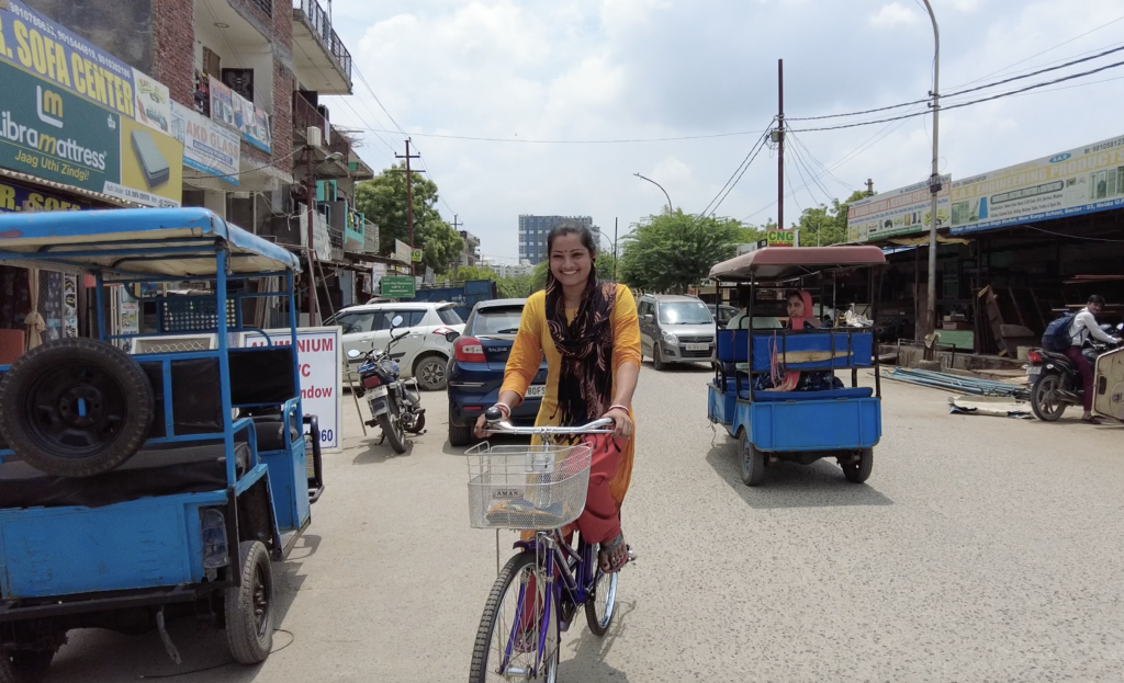 She walks several kilometres daily for work. She requested us for a cycle. We gifted her one of her choice.