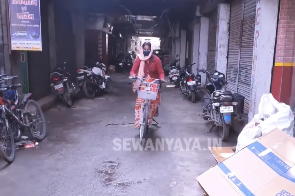 Sadhna Devi from Madhya Pradesh who walks 15 kilometres daily to reach her workplace, gets a cycle from Sewa Nyaya Utthan Foundation (an initiative by @SanjeevSanskrit and @swati_gs)