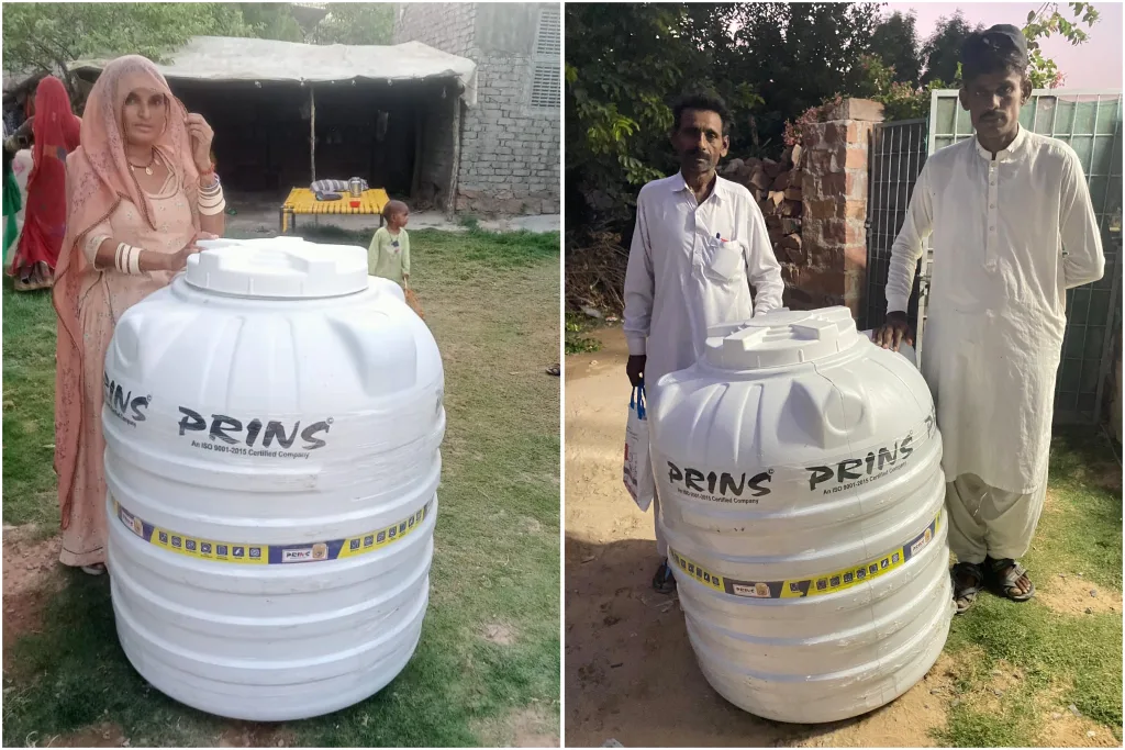 Sewa Nyaya Utthan Foundation gave him and another refugee family water storage tanks – something that is a lifeline in desert and lasts for years. And we arranged for them a water tanker supply for a month.